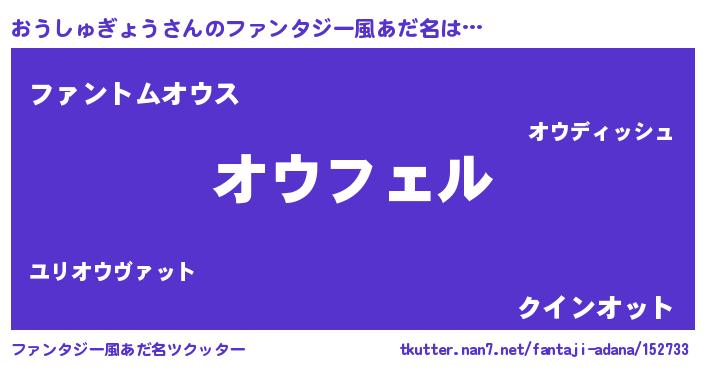 | 2回繰り返すあだ名 | 『おうおう』『ぬめぬめ』『ぼさぼさ』 |