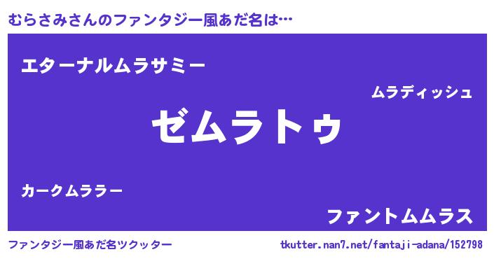 | 女子向けラノベタイトル風あだ名 | 『むらさみなんてお断りですっ。』 |
