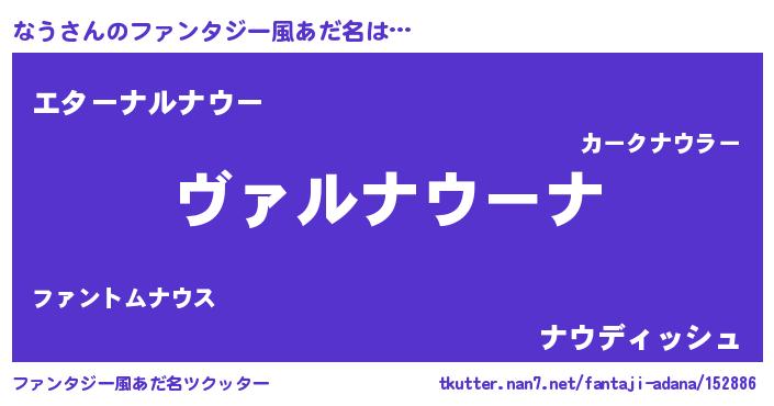 | 男性向けラノベタイトル風あだ名 | 『この素晴らしい世界になうを!』 |