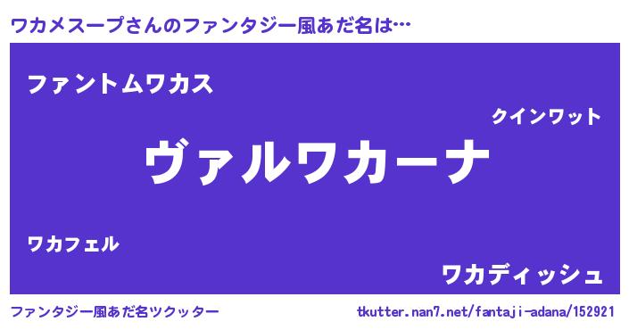 | 男性向けラノベタイトル風あだ名 | 『この素晴らしい世界にワカメスープを!』 |