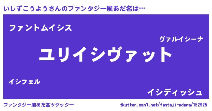 | 男性向けラノベタイトル風あだ名 | 『イシズコウヨウスレイヤー』 |