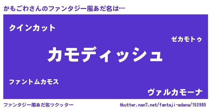 | 男性向けラノベタイトル風あだ名 | 『かもごわという概念が存在しない退屈な世界 』 |