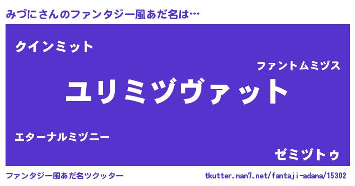 | 男性向けラノベタイトル風あだ名 | 『みづに~年齢イコール彼女いない歴の魔法使い~』 |