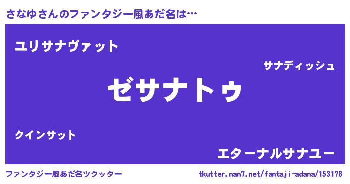 | 欧米人風あだ名 | 『ケンブリッジさなゆ』『ダニエルさなゆ』 |