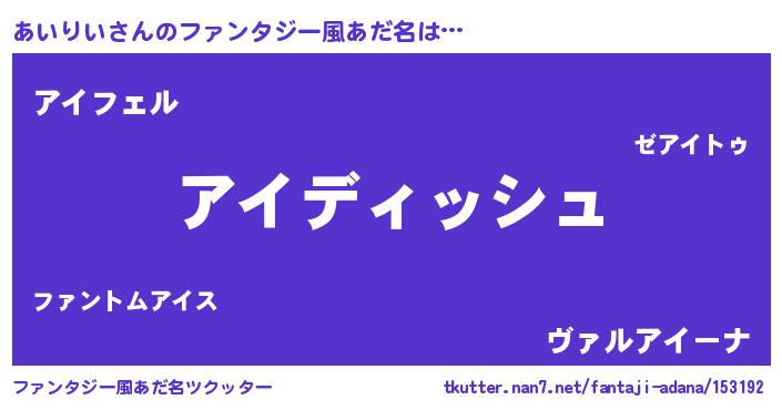 | ヒーロー風カッコイイあだ名 | 『ネオアイリイ』『スーパーアイリイ』 |