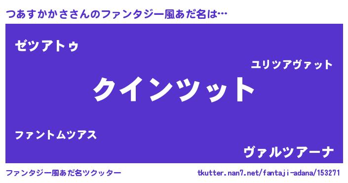 | ヘコむあだ名 | 『つあお』『つあすかかさ(苦笑)』 |