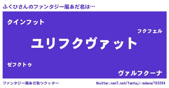 | 男性向けラノベタイトル風あだ名 | 『ふくひ~年齢イコール彼女いない歴の魔法使い~』 |