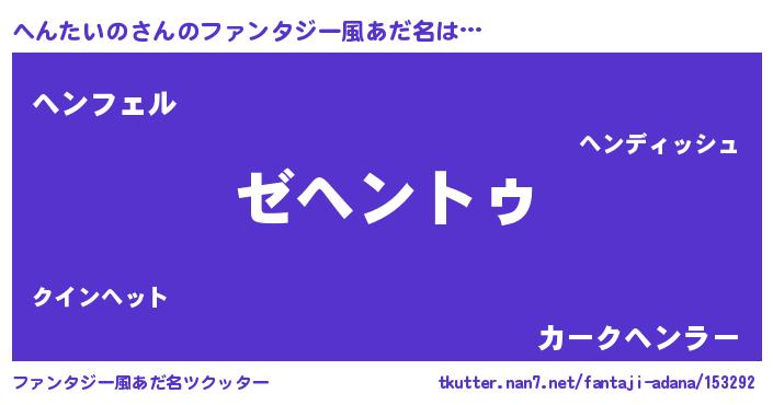 へんたいのさんのファンタジー風あだ名をツクッター!