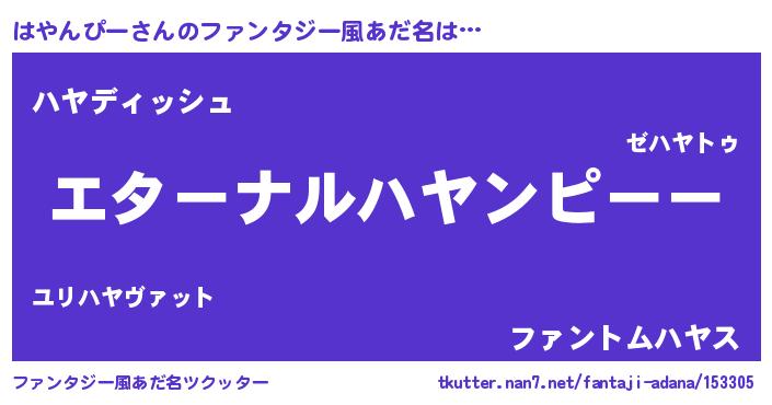 | 欧米人風あだ名 | 『はやんぴークリステル』 |
