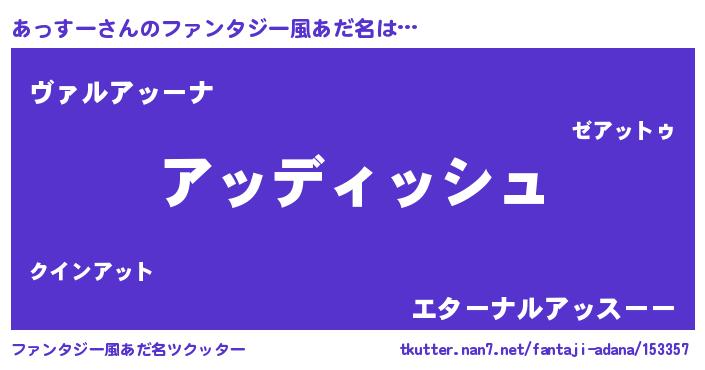 | 女子向けラノベタイトル風あだ名 | 『あっすーの契約王妃』『あっすー恋絵巻』 |