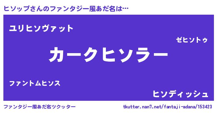 | ヘコむあだ名 | 『ヒソップ(笑)』『ヒソぷりん』 |