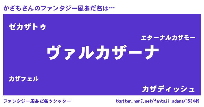 | 男性向けラノベタイトル風あだ名 | 『魔弾の王とかざも』 |