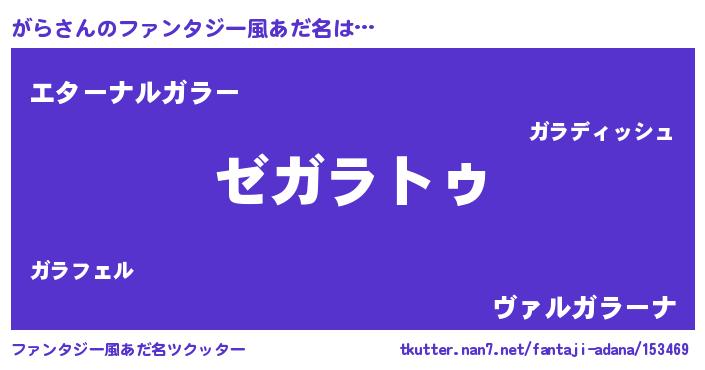 | 男性向けラノベタイトル風あだ名 | 『Re:がらから始める異世界生活』 |