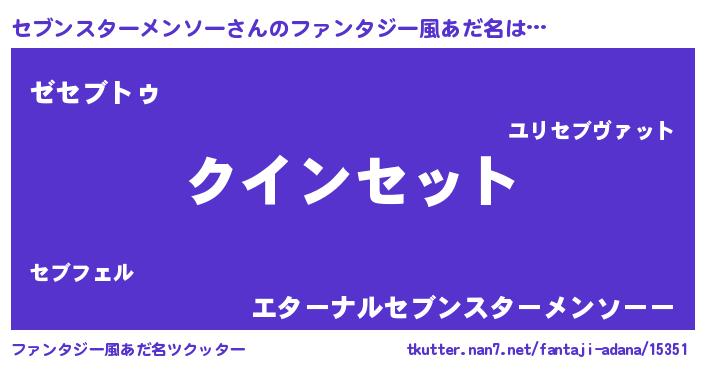 | 女子向けラノベタイトル風あだ名 | 『セブンスターメンソー恋絵巻』 |