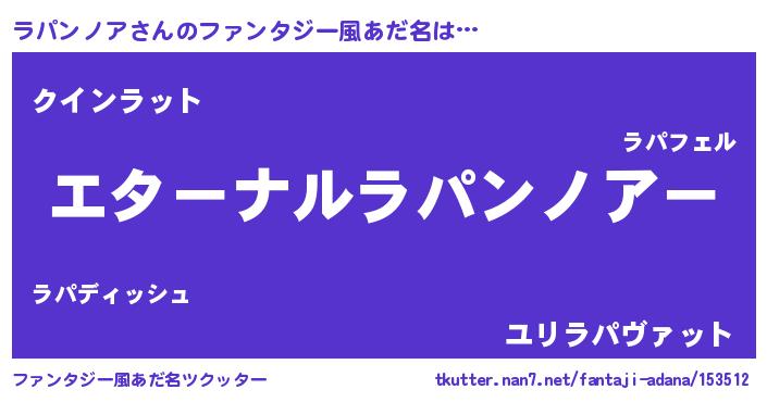 | 欧米人風あだ名 | 『ラパンノアクリステル』 |