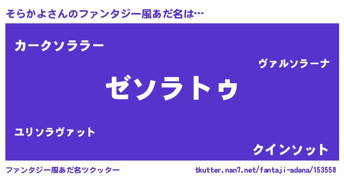| 男性向けラノベタイトル風あだ名 | 『魔法科高校のそらかよ』 |