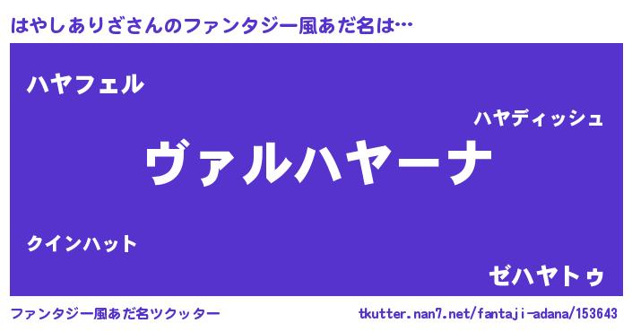 | 男性向けラノベタイトル風あだ名 | 『魔弾の王とはやしありざ』 |