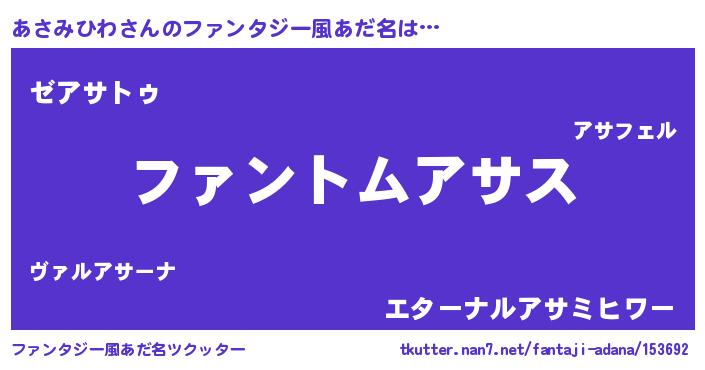 | 女子向けラノベタイトル風あだ名 | 『あさみひわの卵を拾いまして』 |