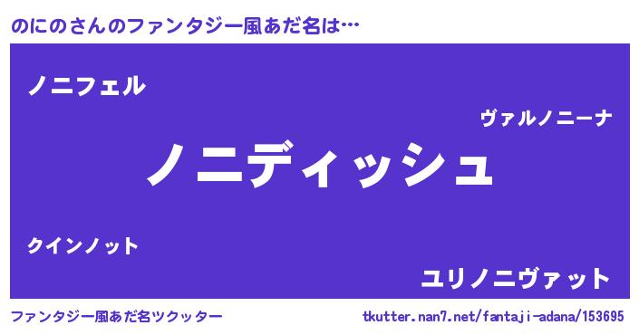 | 男性向けラノベタイトル風あだ名 | 『のにのという概念が存在しない退屈な世界 』 |