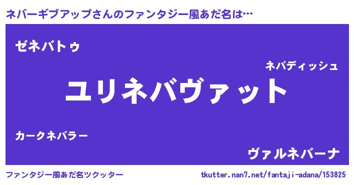 | 男性向けラノベタイトル風あだ名 | 『ネバーギブアップスレイヤー』 |