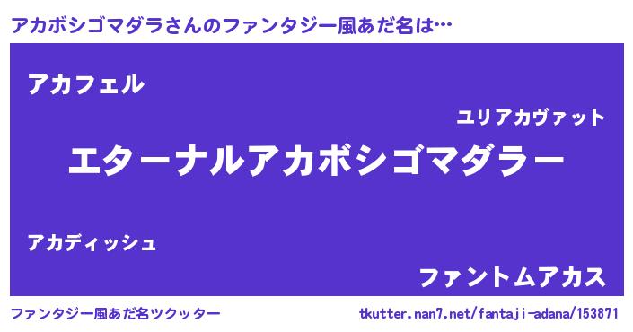 | 意味不明あだ名 | 『アカボシゴマダラフォーエバー』 |