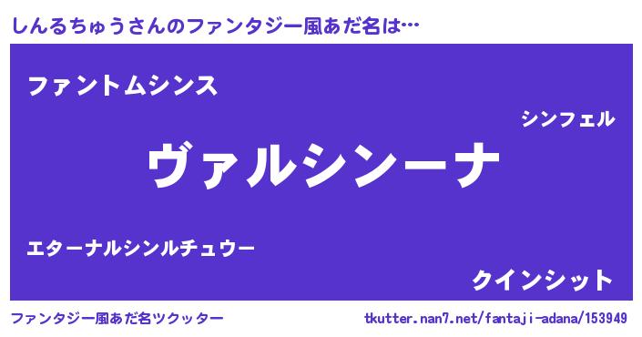 | 男性向けラノベタイトル風あだ名 | 『この素晴らしい世界にしんるちゅうを!』 |