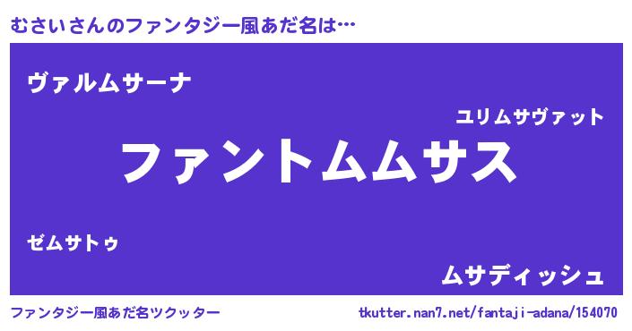 | ポケモン風あだ名 | 『ヒムサイ』『ムーサイ』『ゼニムサ』 |
