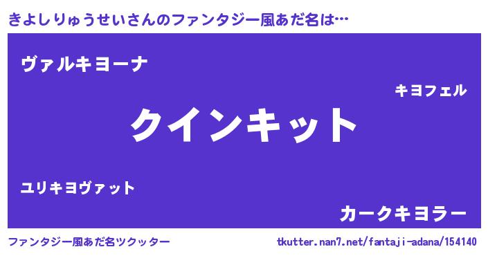 | 女子向けラノベタイトル風あだ名 | 『きよしりゅうせい夫妻のなれそめ』 |