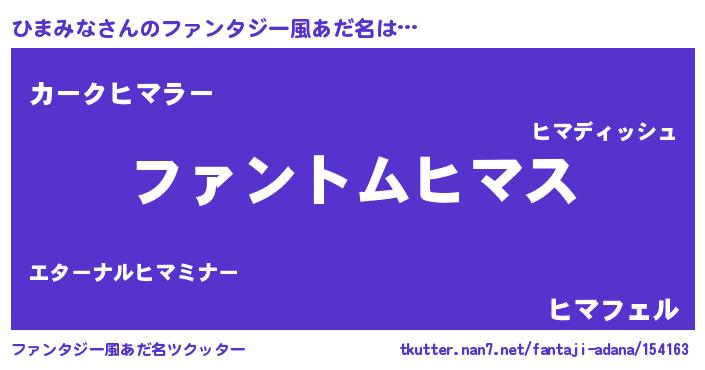 | ヒーロー風カッコイイあだ名 | 『天弓騎士ヒマ』『スーパーヒマミナ』 |