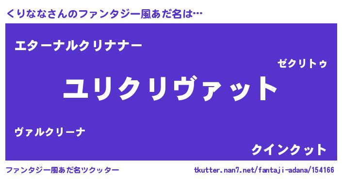 | 男性向けラノベタイトル風あだ名 | 『転生したらくりななだった件』 |