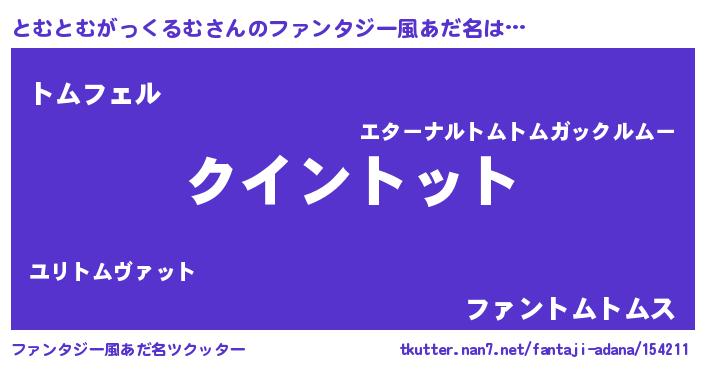 | 女子向けラノベタイトル風あだ名 | 『とむとむがっくるむ夫妻のなれそめ』 |