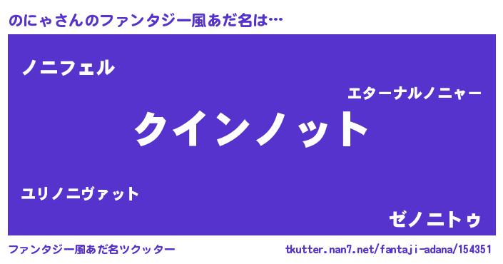 | 男性向けラノベタイトル風あだ名 | 『ノーゲーム・ノーノニャ』 |