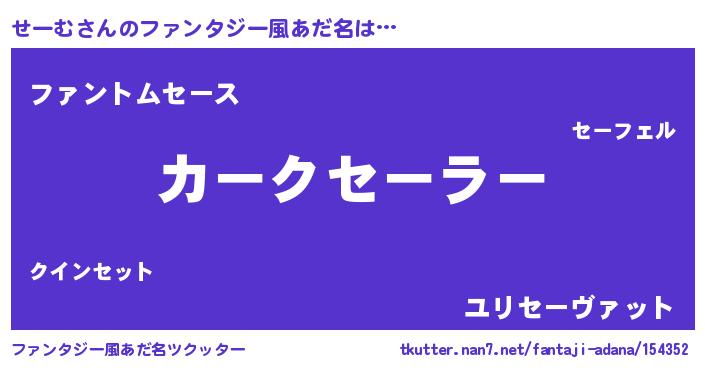 | 意味不明あだ名 | 『とにかく怪しいせーむ』『自称せーむ』 |