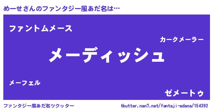 | 男性向けラノベタイトル風あだ名 | 『誰もが恐れるあのめーせが、ぼくの専属メイドになるようです。』 |