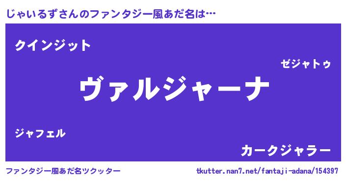 | 男性向けラノベタイトル風あだ名 | 『魔弾の王とじゃいるず』 |