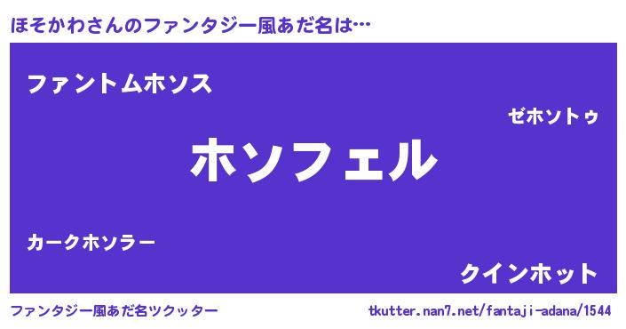 | 男性向けラノベタイトル風あだ名 | 『ほそかわに滅ぼされるだけの簡単なお仕事です』 |
