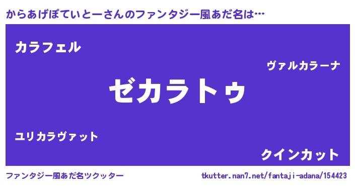 | 意味不明あだ名 | 『自称からあげぽていとー』 |