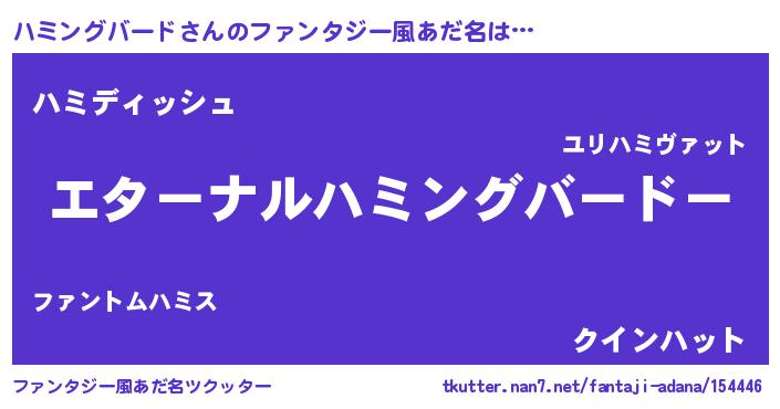 | 男性向けラノベタイトル風あだ名 | 『はたらくハミングバードさま!』 |