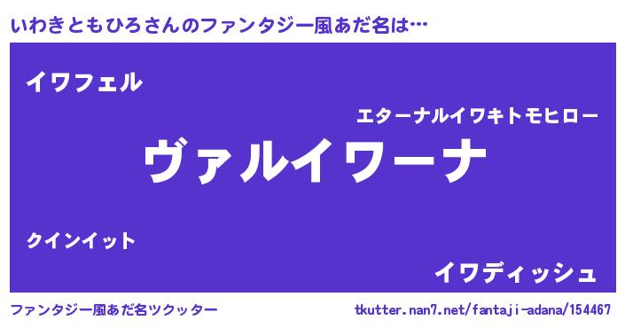 | 男性向けラノベタイトル風あだ名 | 『この素晴らしい世界にいわきともひろを!』 |