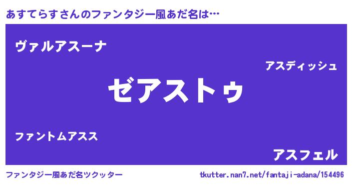 | 男性向けラノベタイトル風あだ名 | 『Re:あすてらすから始める異世界生活』 |