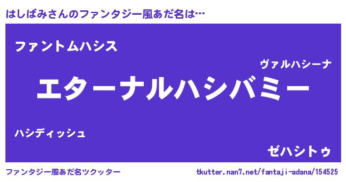 | 意味不明あだ名 | 『はしばみフォーエバー』『自称はしばみ』 |