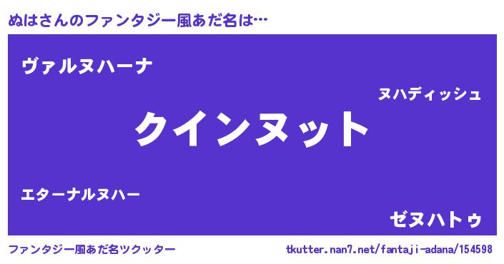 | 女子向けラノベタイトル風あだ名 | 『死神ぬはの再婚』『ぬはの雑貨屋さん』 |