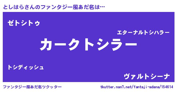 | 意味不明あだ名 | 『自称としはら』『としはらフォーエバー』 |