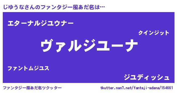 | 男性向けラノベタイトル風あだ名 | 『この素晴らしい世界にじゆうなを!』 |