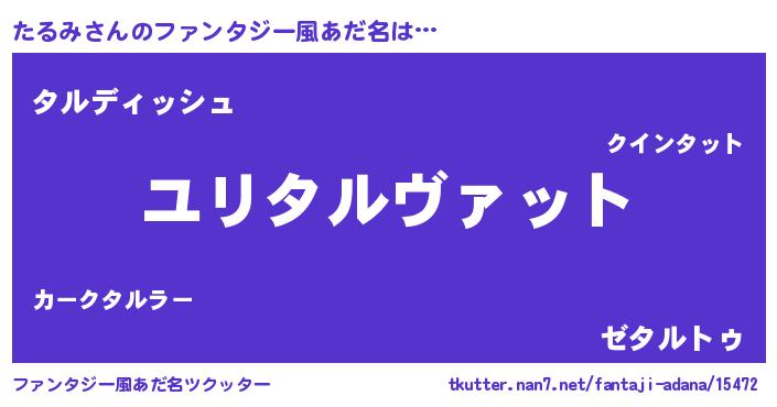 | 女子向けラノベタイトル風あだ名 | 『たるみの玉の輿計画!』『たるみ恋絵巻』 |