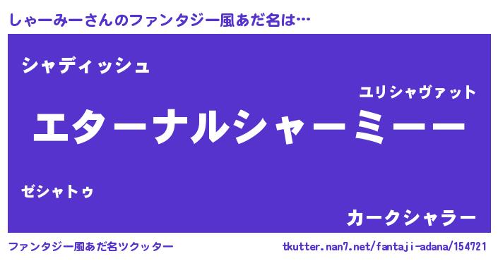 | 女子向けラノベタイトル風あだ名 | 『しゃーみー伯爵の花嫁』 |