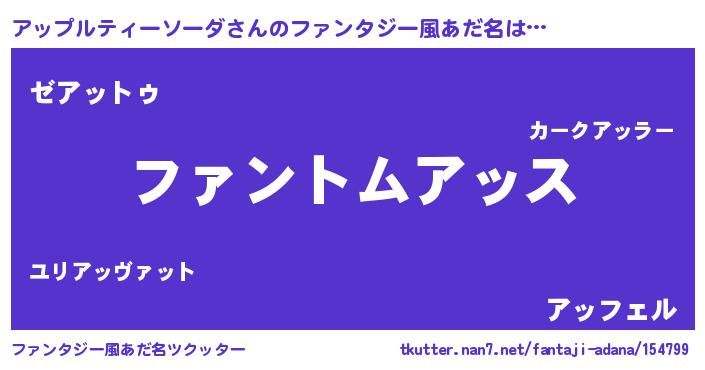 | 意味不明あだ名 | 『とにかく怪しいアップルティーソーダ』 |