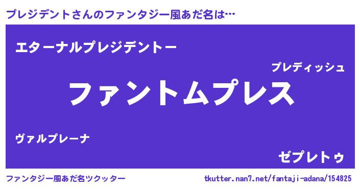 | ヒーロー風カッコイイあだ名 | 『黄金騎士プレ』『究極戦士プレジデント』 |