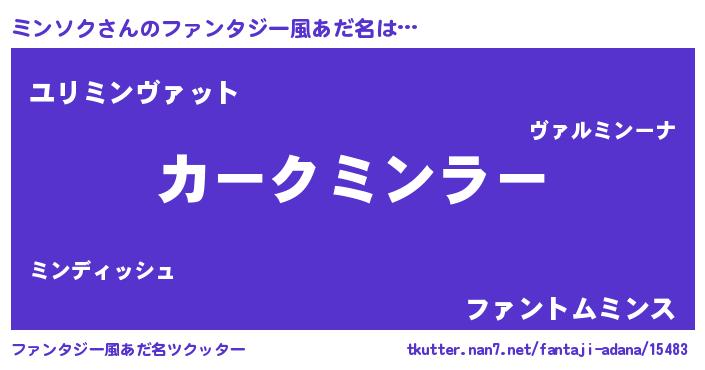 | 胡散臭い通販商品みたいなあだ名 | 『信頼と実績のサプリメント…その名も「ミンソク」』 |