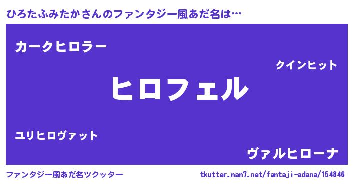 | 女子向けラノベタイトル風あだ名 | 『ひろたふみたか姫と円卓の騎士』 |